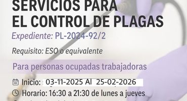 👀 *PARA PERSONAS TRABAJADORAS OCUPADAS:* 🎓 *SERVICIOS PARA EL CONTROL DE PLAGAS* (SEAG0110) *PL-2024-92/2* *Nivel de cualificación profesional:* 2 Competencia general: Preparar, transportar y aplicar medios y productos