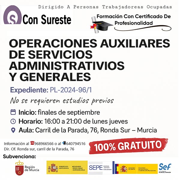 📍 Dirección del aula: PZ/ DE LA PARADA, 7, Planta BJ, Puerta 11, CP 30010- Murcia